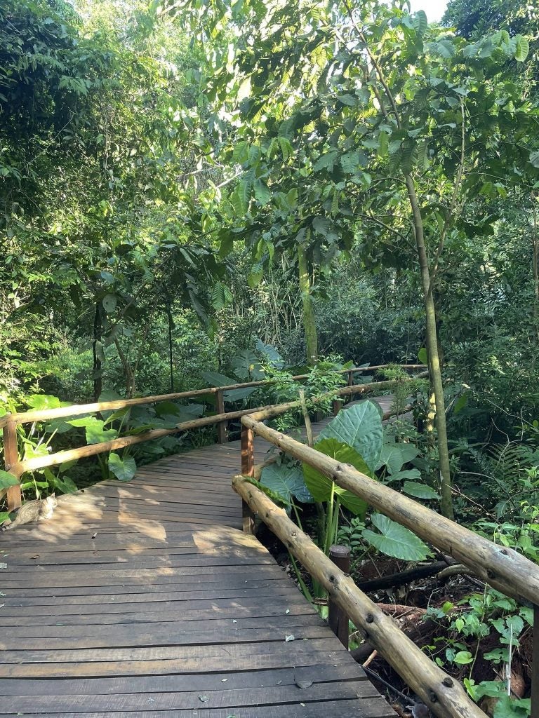 Pensaba ir a la pequeña ciudad a dar una vuelta, pero me han dicho que básicamente solo hay tiendas de souvenirs y muchos bares, por lo que no me ha costado nada tomar la decisión de quedarme en esta pequeña “selva civilizada”.