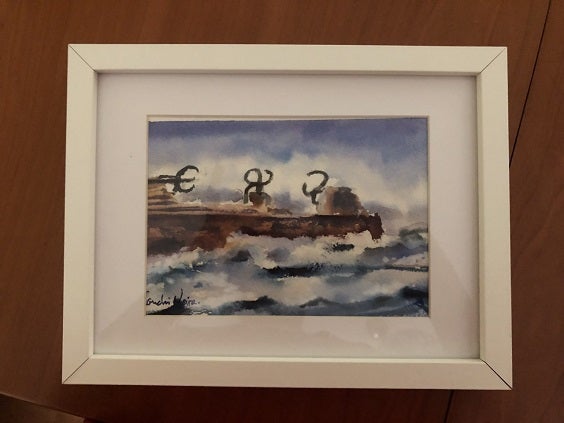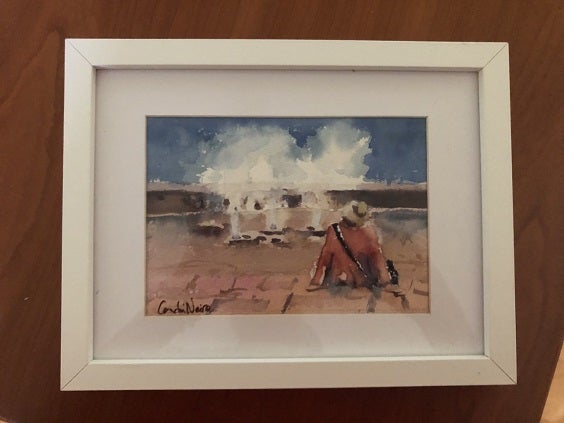 Me lo enviaba una artista a la que conocí por Facebook y de cuyas acuarelas quedé enamorada a primera vista por lo que le pedí “amistad” y empecé a seguir el caminito de sus cuadros por diversos puntos de la ciudad decidida a hacerme un regalo.