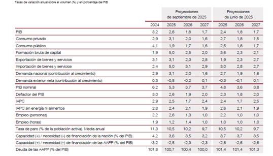 Tabla 1. Previsiones macroeconómicas del Banco de España. Septiembre 2025.