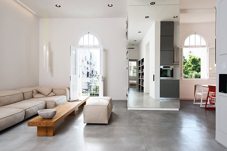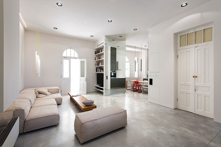En este apartamento ubicado en TelAviv, nos fijamos especialmente en la limpieza de sus espacios, tiene una superficie de 116 m2 , y se ha mantenido la identidad del edificio del año 1924.