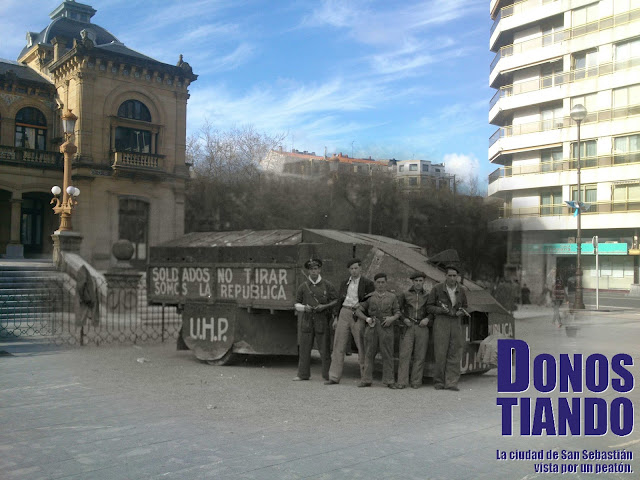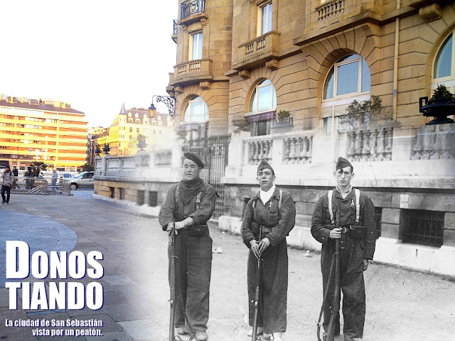 Hoy, conmemorando el 80 aniversario del comienzo de la Guerra Civil Española, usando montajes fotográficos para ver el antes y después, haremos un breve recorrido por San Sebastián durante el comienzo de la Guerra Civil Española. En un primer párrafo explicaremos el suceso histórico en torno a la fotografía, para seguir con otro párrafo donde se analizarán los pormenores de la imagen.