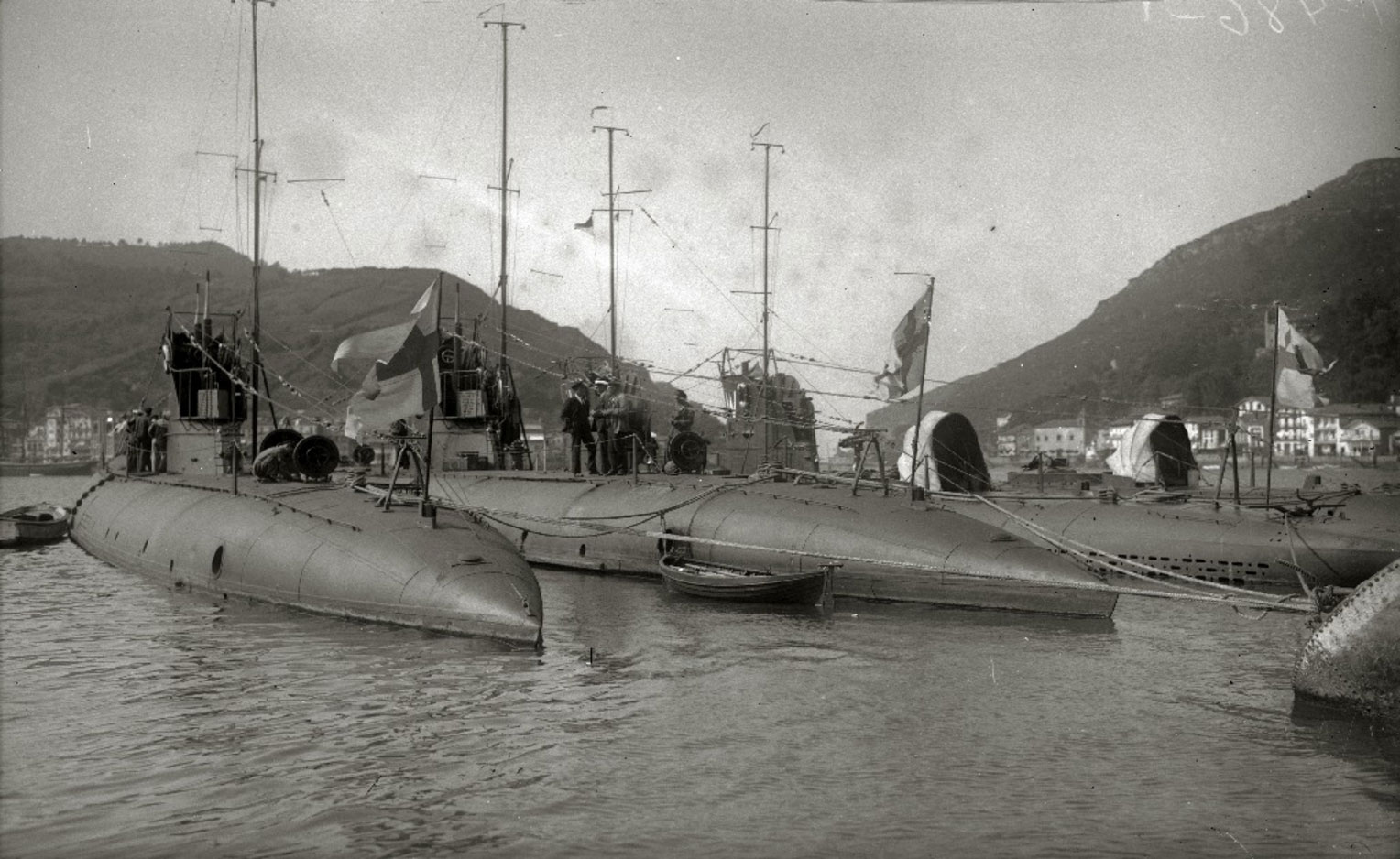 | Popas de los submarinos, con el pabellón sueco izado. Kutxateka. |