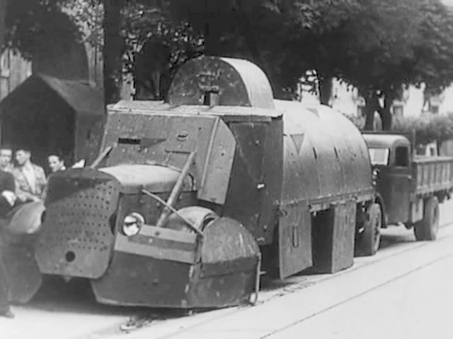 En la imagen, proveniente de una filmación sobre la entrada de las tropas sublevadas en Tolosa, puede verse un “tiznado” (término coloquial para camiones blindados improvisados), en cuya carrocería, llena de pintadas con las banderas rojinegras del anarco-sindicalismo y siglas como FAI-CNT, AIT o UHP[3], hay una inscripción que destaca sobre las demás: “Rojo-Trincherpe”. Por ello, se deduce que fue fabricado en alguno de los talleres del barrio de Pasaia. Quién sabe si pudiera tratarse del mismo vehículo.[4]
