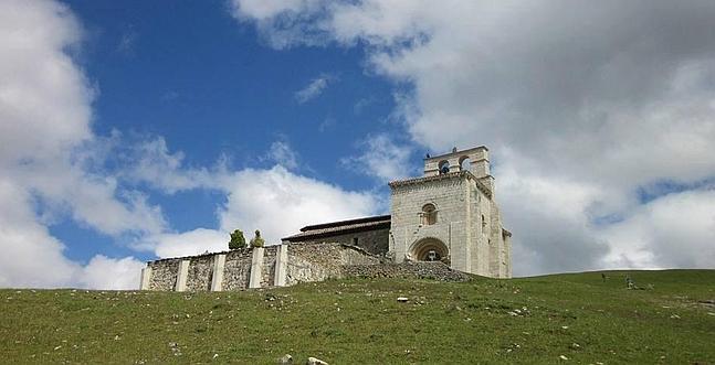 Vuelta al cruce. Dejamos atrás los campos de patata y cereal. La carretera sigue el Jerea y aparece la ermita románica de San Pantaleón, sobre una nava. Es uno de los edificios más hermosos del románico burgalés. Los cultos exotéricos lo relacionan con el Santo Grial. También dicen que perteneció a los templarios.